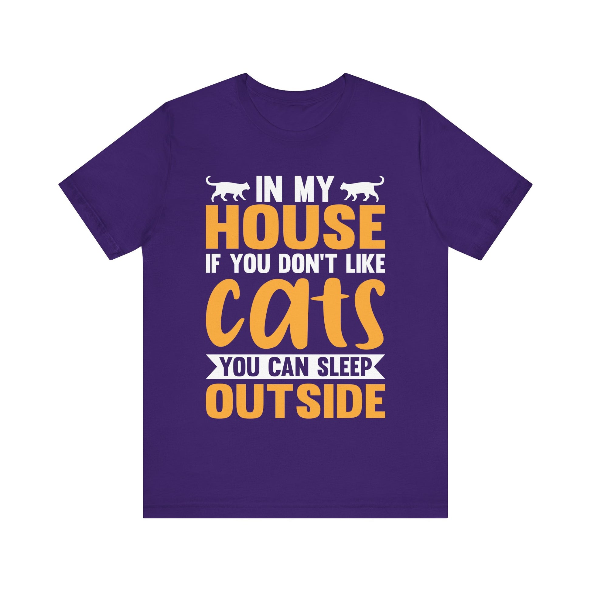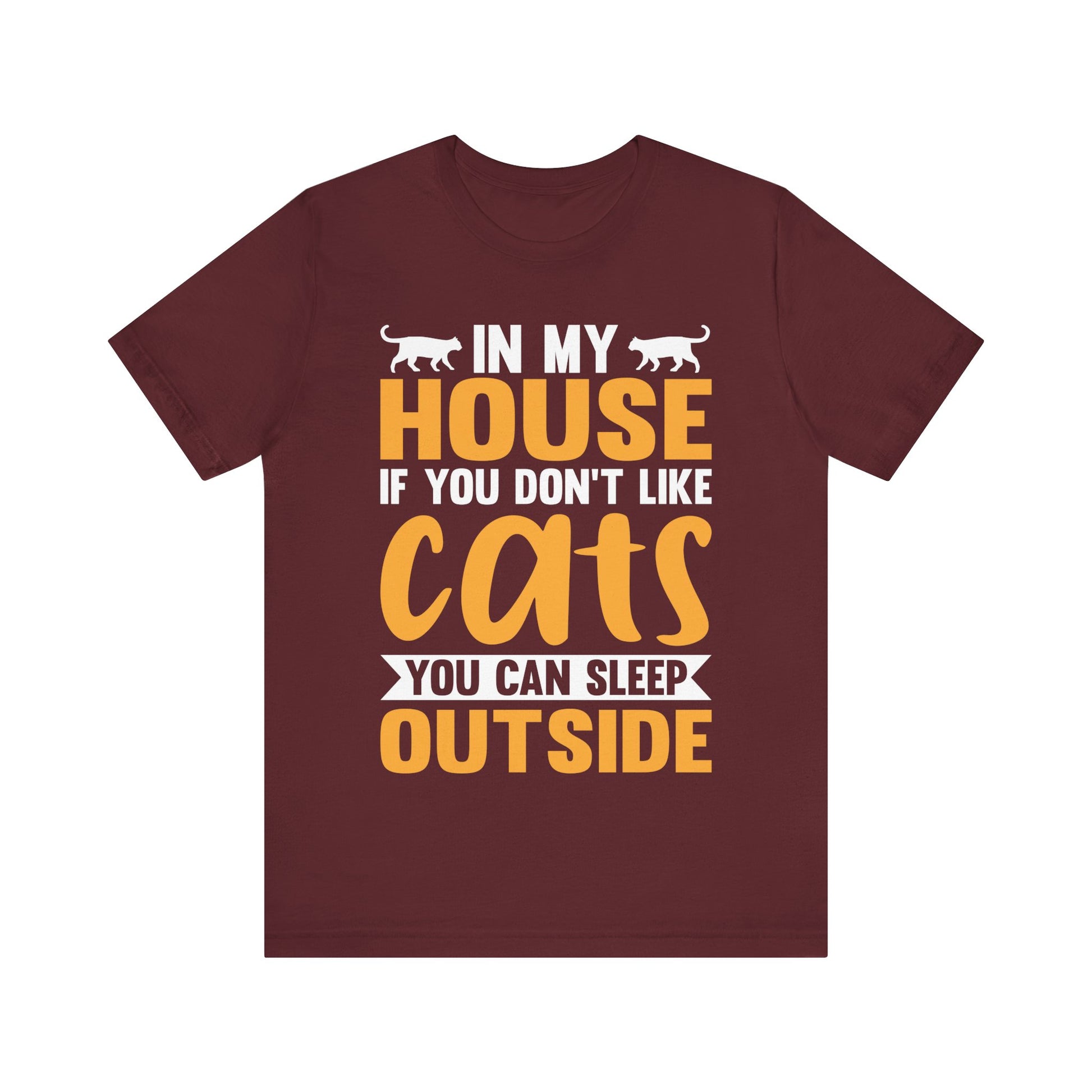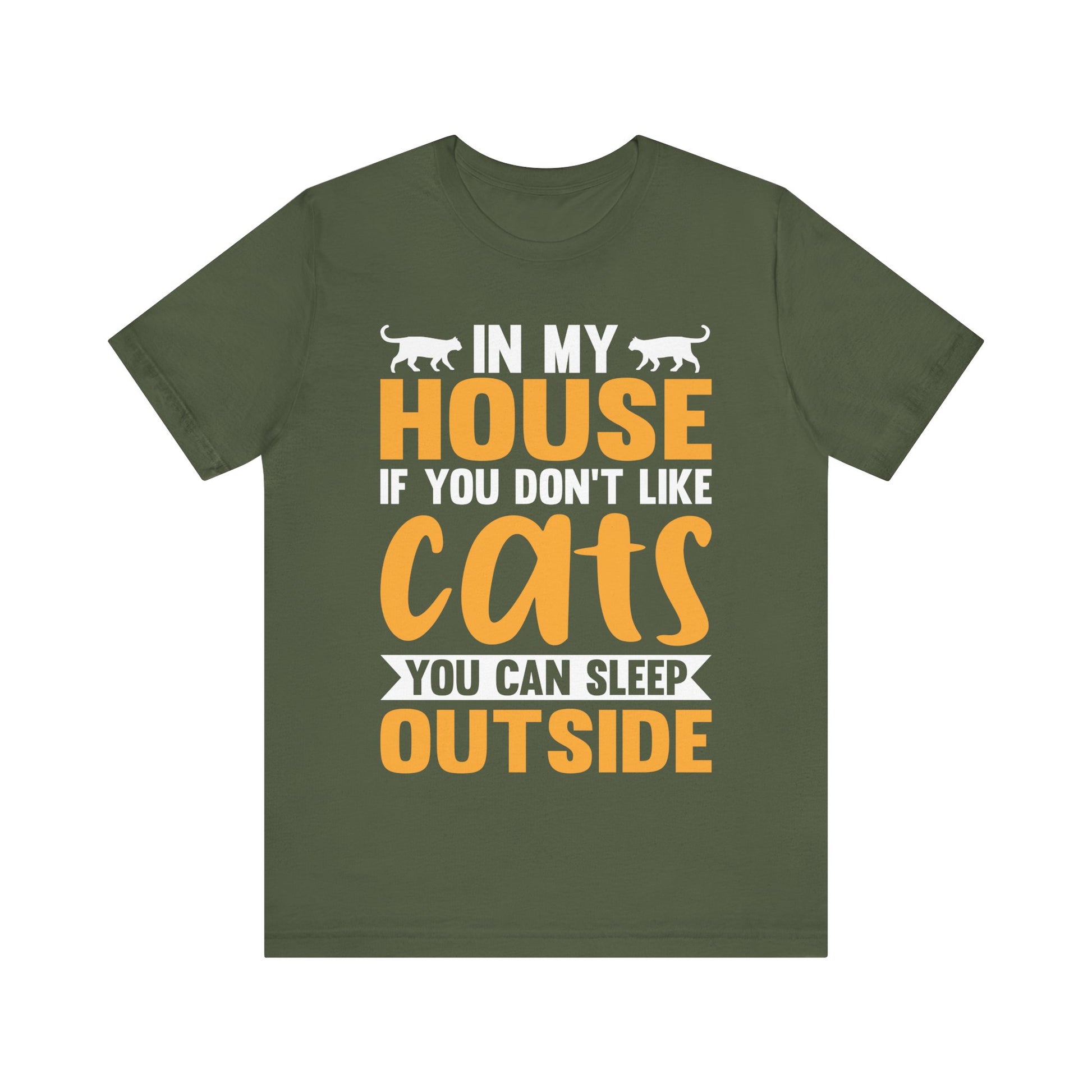 Funny Cat Lover T-Shirt – “In My House If You Don’t Like Cats You Can Sleep Outside” Tee – Bold Statement Shirt for Cat Owners & Pet Parents