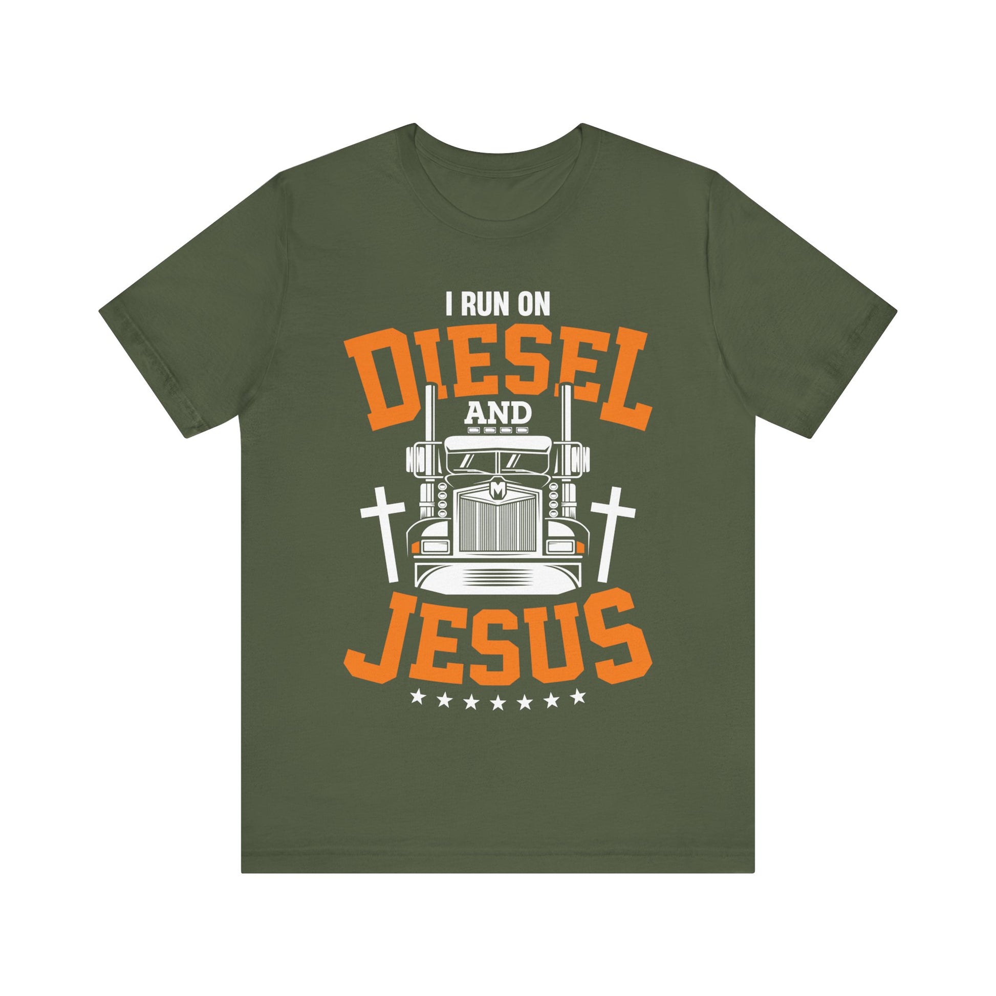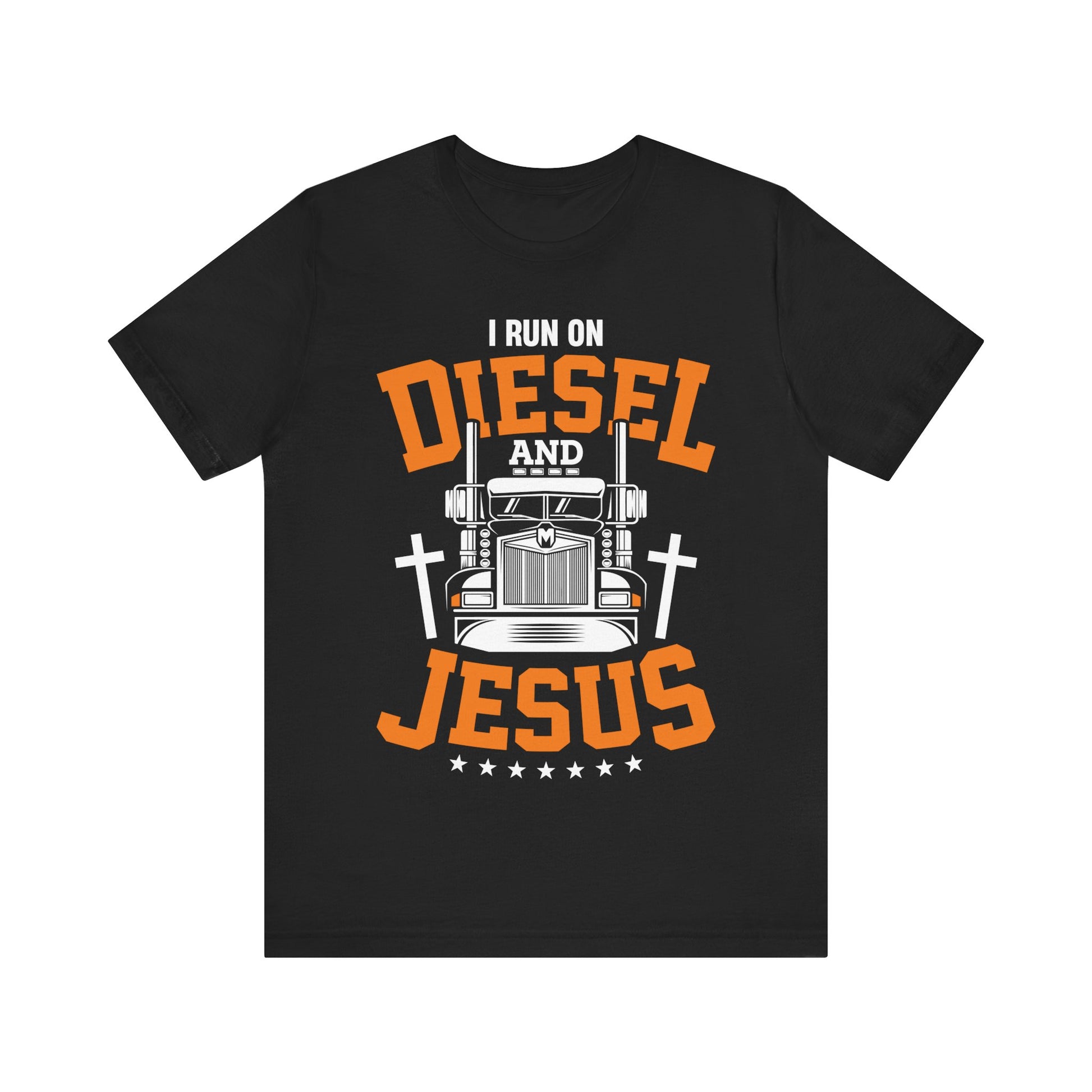 I Run on Diesel and Jesus T-Shirt – Christian Trucker Shirt for Men – Faith and Fuel Graphic Tee