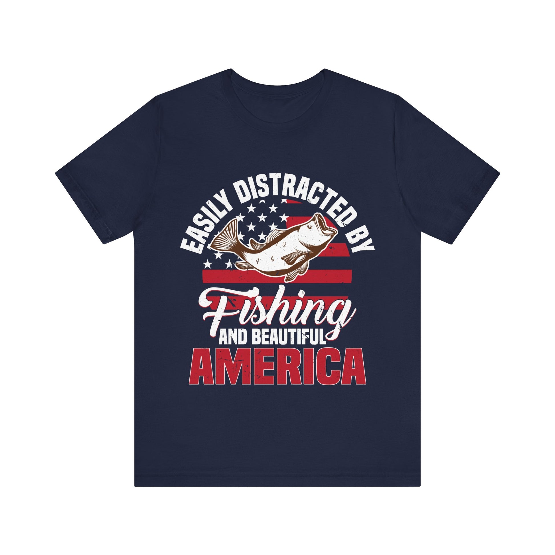 - 🎣 Funny Patriotic Message – “Easily Distracted by Fishing and Beautiful America” says exactly what every angler is thinking.