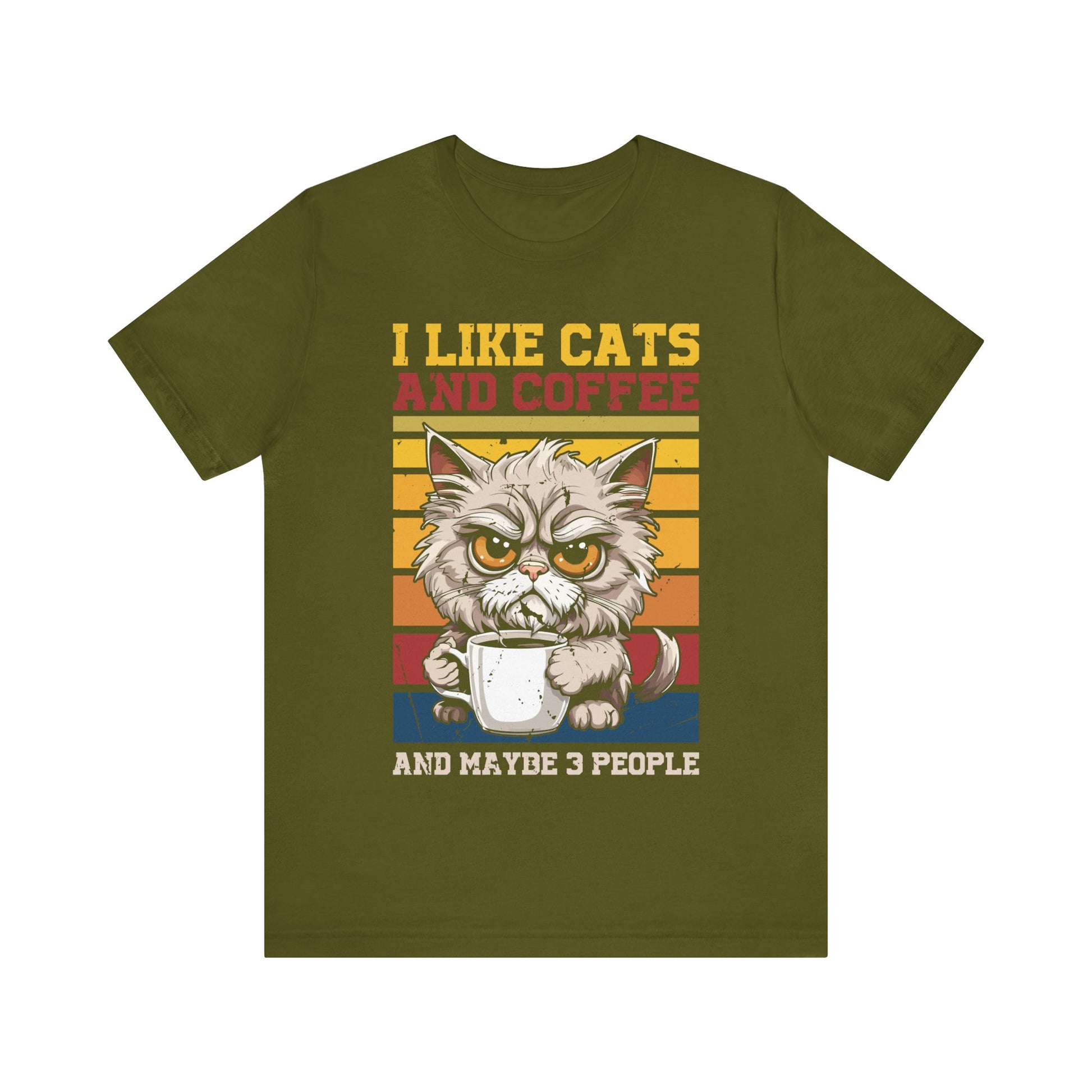 I Like Cats and Coffee and Maybe 3 People T-Shirt – Funny Grumpy Cat Lover Tee – Sarcastic Introvert Shirt for Pet & Caffeine Addicts