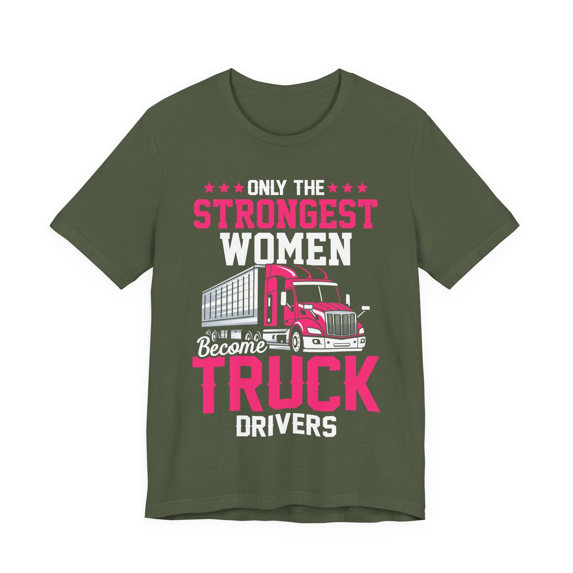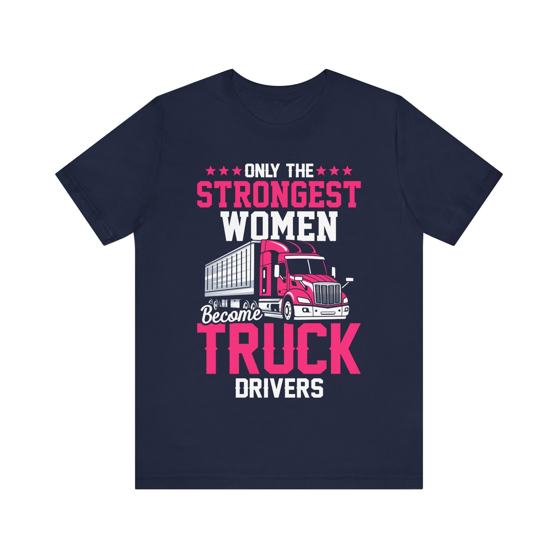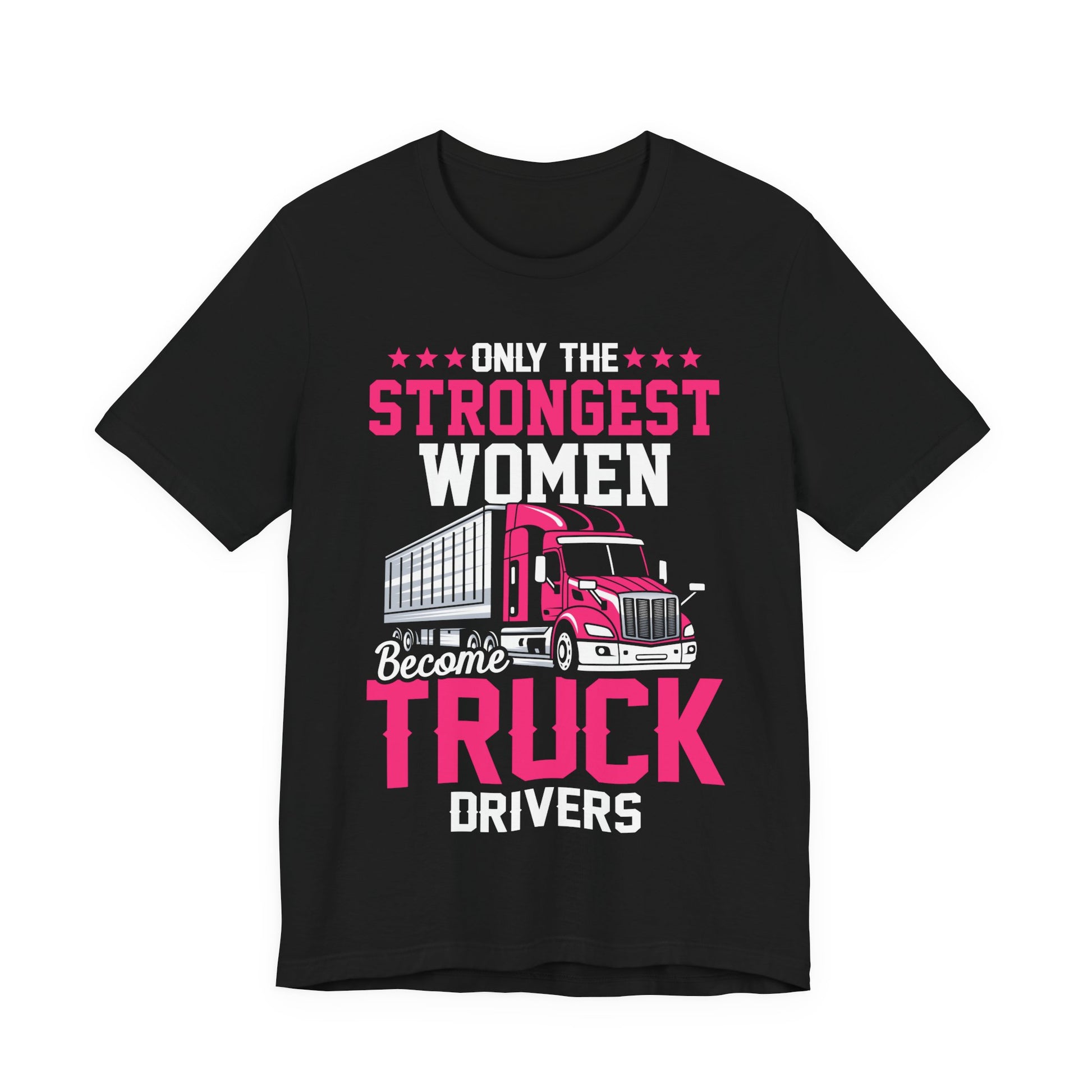 Only the Strongest Women Become Truck Drivers T-Shirt – Pink Semi Truck Graphic Tee – Women’s Trucker Shirt