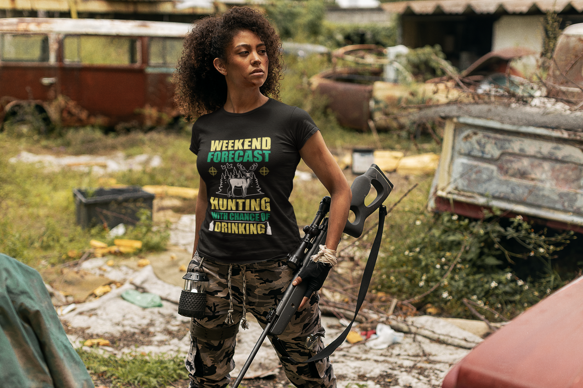 Get ready for the ultimate weekend vibe with this hilarious “Weekend Forecast: Hunting with a Chance of Drinking” t-shirt! Whether you’re headed to deer camp, the woods, or just the back porch with a cold one, this shirt says it all for hunters who know how to mix fun with their aim. Designed for outdoor enthusiasts, hunters, and beer lovers, this graphic tee blends humor, lifestyle, and personality into one bold design. It’s the perfect gift for dads, husbands, uncles, and buddies who love their rifles and their drinks.